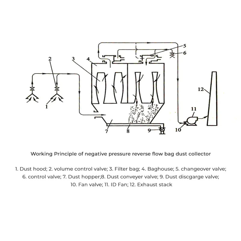 Negatif Basınçlı Geri Üfleme Torbalı Toz Toplayıcı, endüstriyel üretimde yaygın olarak kullanılan bir toz giderme cihazıdır. Filtre torbalarında biriken tozu uzaklaştırmak için havayı geri üflemek üzere negatif basınç kullanarak çalışır. Bu cihazın ana bileşenleri arasında toz toplama kutusu, filtre torbaları, negatif basınçlı üfleyici ve geri üfleme cihazı bulunur. Geleneksel toz toplayıcılarla karşılaştırıldığında, negatif basınçlı geri üflemeli torbalı toz toplayıcılar daha yüksek toz giderme verimliliği ve daha düşük işletme maliyetleri sunarak şirketler arasında giderek daha popüler hale geliyor.